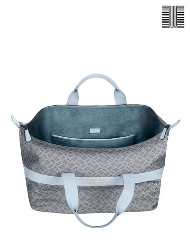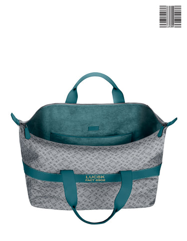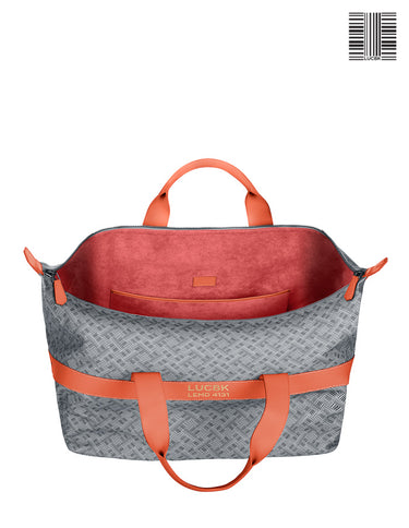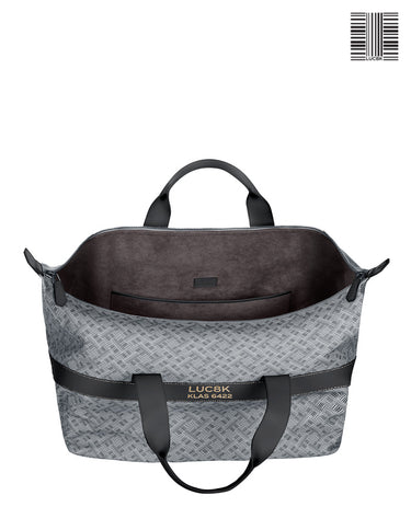 Italian waterproof coated canvas with genuine LUC8K bar code design for your weekender bag duffel